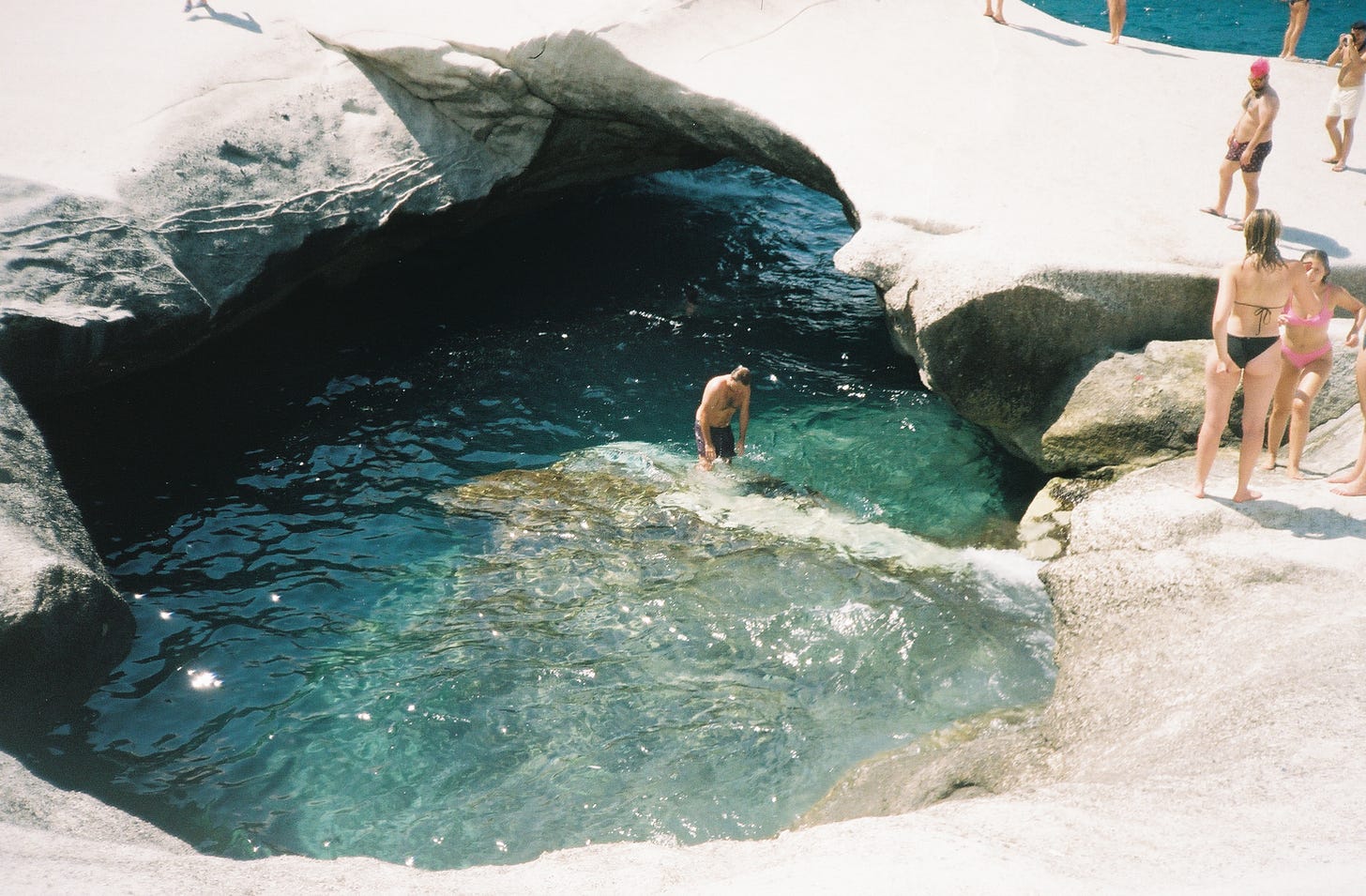I walked up to top of the bigger cliff. The waves suddenly looked exponentially smaller, a fortress instead of the friendly cocoon we were just in. There was another girl waiting to jump, weighing the same thing. I gestured at her to go first. She made the same gesture back. “No, you can go.”